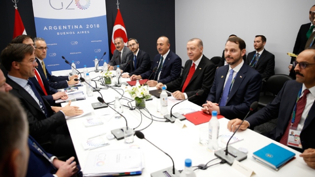 G20 Liderler Zirvesi dolayısıyla Arjantin'in başkenti Buenos Aires'te bulunan Cumhurbaşkanı Recep Tayyip Erdoğan, Hollanda Başbakanı Mark Rutte ile bir araya geldi.