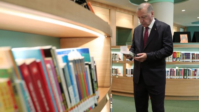Cumhurbaşkanı Erdoğan kütüphanede incelemede bulundu
