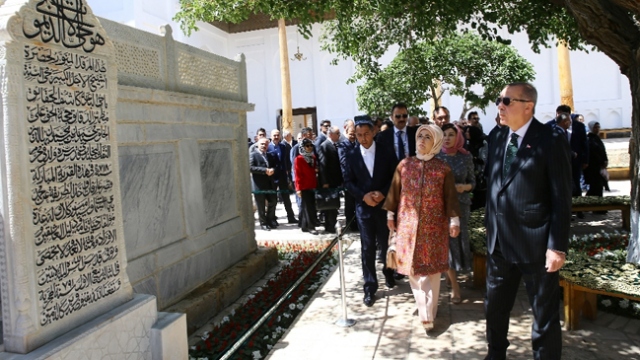 Cumhurbaşkanı Recep Tayyip Erdoğan, Özbekistan’ın Buhara şehrinde bulunan Muhammed Bahauddin Şeyh Nakşibend Türbesi’ni ziyaret etti.