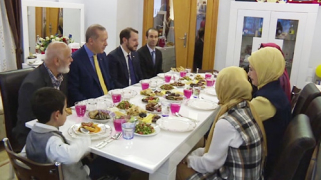 Cumgurbaşkanı Erdoğan eşi Emine Erdoğan, Enerji Bakanı Berat Albayrak ile Aile ve Sosyal Politikalar Bakanı Fatma Betül Sayan Kaya şehit ailesi ile iftar yemeği yedi.