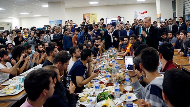 Cumhurbaşkanı Erdoğan, Ankara'da yurtta kalan üniversite öğrencilerinin sahur davetini geri çevirmeyerek sofralarına misafir oldu.