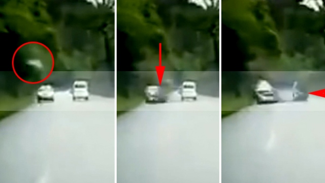 Çin'in kırsal kesiminde dağdan kopan dev kaya parçası, seyir halindeki bir arazi aracının üzerine düştü.