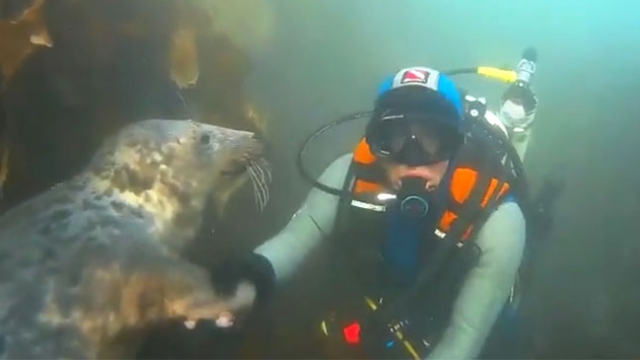 Dalgıcın sevimli su altı arkadaşı "fok" ile eğlenceli anları