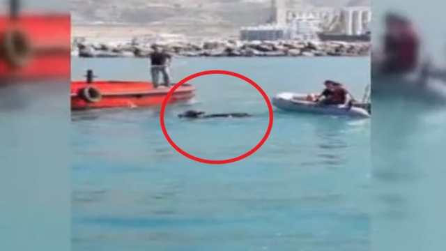 Hatay İskenderun'da denize düşen ve yüzerek kaçmaya çalışan angus için liman içerisinde sahil güvenlik ekipleri, kurtarma operasyonu düzenledi.