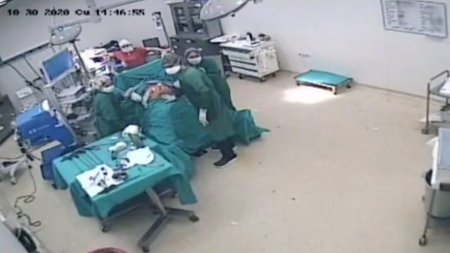 İzmir'de meydana gelen 6,6 büyüklüğündeki deprem sırasında ameliyatta olan ekibin soğukkanlılığını koruduğu, operasyon yapılan hastayı düşmemesi için tuttuğu anlar güvenlik kamerasına yansıdı.