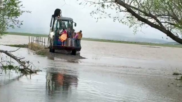 Ardahan’ın Göle ilçesinde, 2 gündür devam eden yağmur nedeniyle dere taştı, köyün bir bölümü sular altında kaldı. AFAD ekipleri, mahsur kalanları kepçeyle kurtardı.