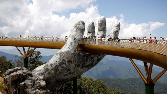 Vietnam'da sıra dışı tasarımıyla ilgi çeken Altın Köprü'yü iki büyük taş renkli insan eli tutuyor. Köprü, açıldığı günden beri turistlerin ilgisini çekiyor.