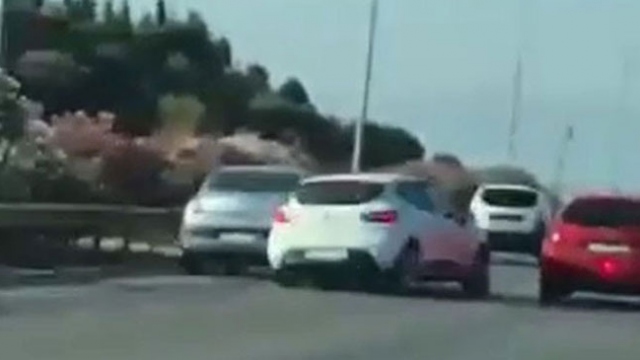 İzmir'de otomobil sürücüsü, yolda giderken tartıştığı sürücünün otomobiline doğru direksiyonu kırınca kazaya neden oldu. Ölen veya yaralanan olmazken, o anlar arkadan gelen bir başka sürücü tarafından kayda alındı.