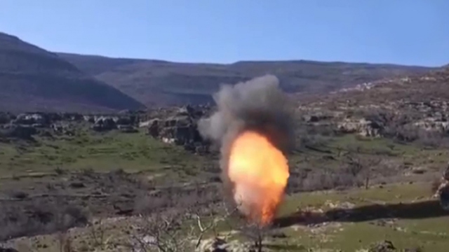 Diyarbakır'da, terör örgütü PKK'ya yönelik düzenlenen operasyonda tespit edilen mağara ve sığınaklarda tespit edilen mühimmat ve malzemeler imha edildi.