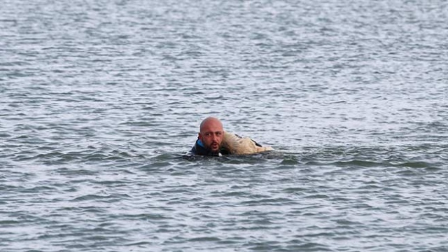 Van'ın İpekyolu ilçesinde, dalgıç polis Burak Ökten, gölde donmak üzere olan köpek yavrusunu buzları kırarak kurtardı.