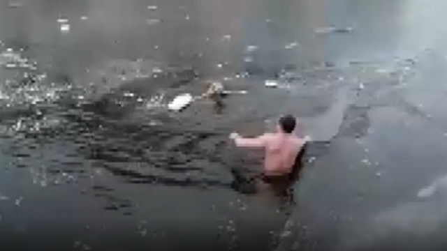 Rusya’da donmuş nehre düşen köpeği gören bir adam, üstündekileri çıkarak soğuk suya atladı. O görüntüler sosyal medyada yoğun ilgi çekerken, yapılan yorumlarda köpeğin kurtarıcısı tebrik edildi.