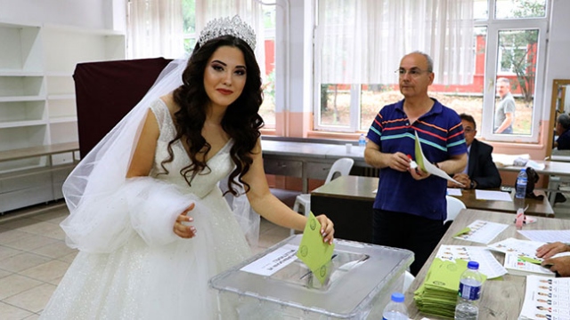 Eskişehir ve Tekirdağ'da gelinler düğün öncesi, Cumhurbaşkanlığı ve 27. Dönem Milletvekilliği seçimleri için gelinlikleriyle sandık başına gitti.