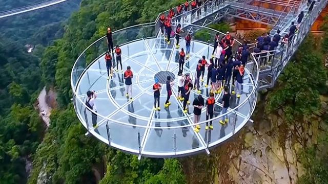 Dünyanın en büyük ve en yüksek cam terası, Çin Qingyuan'da açıldı. Yerden 202 metre yükseklikte bulunan teras, turistlere hem korku hem heyecanı bir arada yaşatıyor.