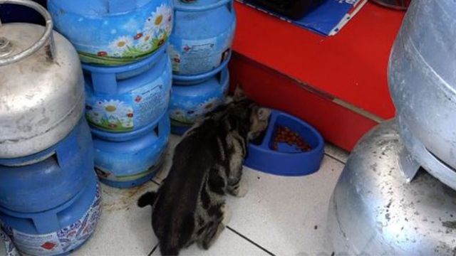 Balıkesir'in Edremit ilçesinde yaşayan tüpçü Ali Eytemiş, iş yerinde 50'ye yakın kediye bakıyor.