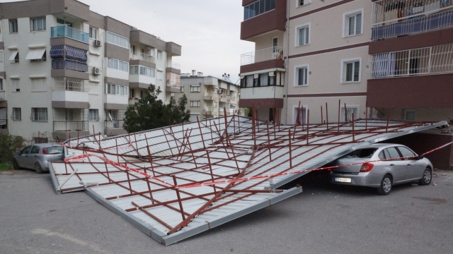 Şiddetli rüzgar, Ege Bölgesi'nde etkili oluyor. İzmir'de rüzgar nedeniyle bir evin çatısı uçtu, park halindeki otomobillerin üzerine düştü. Olayda şans eseri ölen ya da yaralanan olmadı.