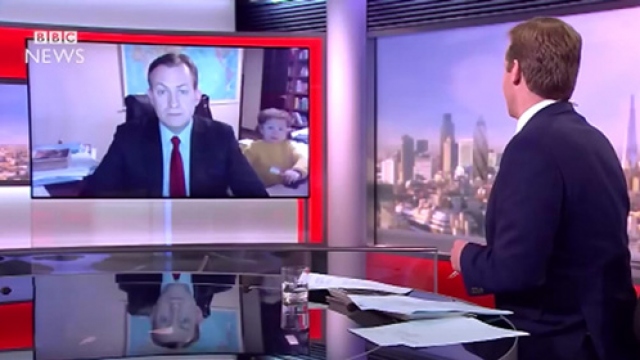 Evinden video konferans yöntemi ile kanalın yayınına bağlanan akademisyen Robert Kelly'nin çocukları bağlantı esnasında odaya girdi. Yayın bir anda karıştı.