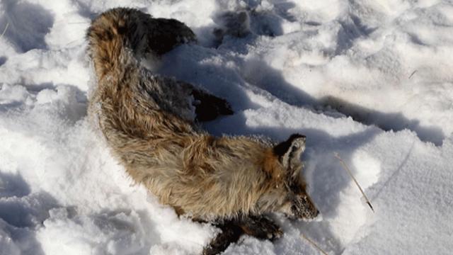 Van'ın Başkale ilçesinde etkili olan Sibirya soğukları, bir tilkinin donmasına neden oldu.