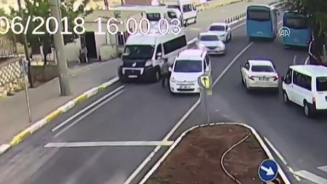 Mardin Artuklu’da Savur Kapı mahallesindeki diş hastanesi önünde trafikte yol verme tartışması yüzünden aracından inen sürücü el frenini çekmeyi unuttu. Başka bir aracın sürücüsüyle tartışmak isterken aracının geri kaçtığını gören sürücü zor anlar yaşadı.