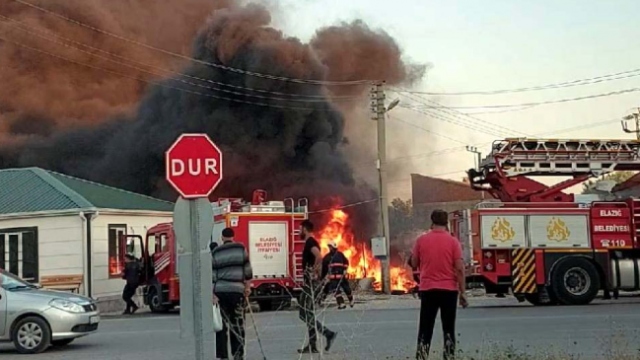Elazığ'da inşaat malzemelerinin bulunduğu depoda yangın