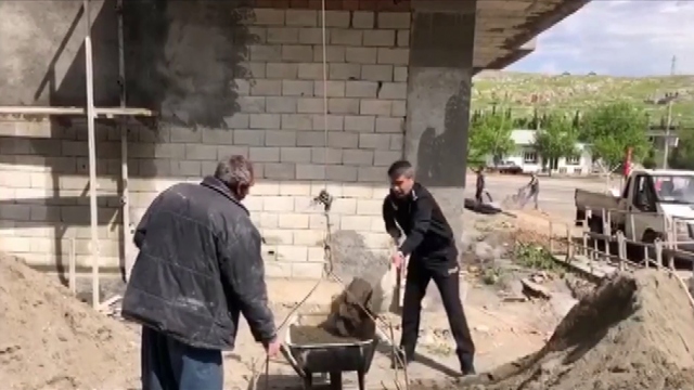 Adıyaman Emniyet Müdürü Metin Alper, aracıyla seyir halindeyken gördüğü inşaat işçilerinin yanına giderek, kürekle el arabasına kum doldurmalarına yardımcı oldu.