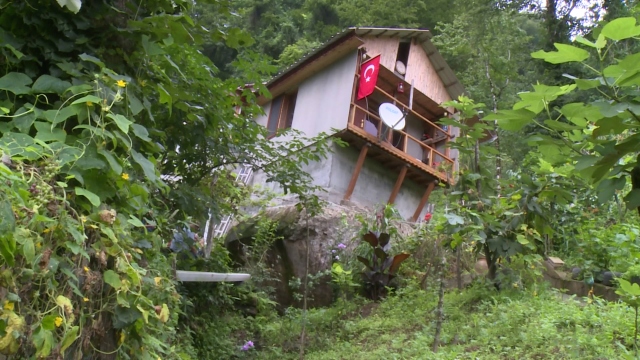 Karadeniz'in engebeli coğrafyası, yöre insanını farklı arayışlara itiyor. Rize'de bir vatandaş arsa sorunu yaşayınca, evini kaya üzerine inşa etti.