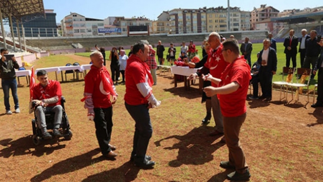 Ordu'da temsili olarak vatani görevini yapacak engellilere asker kınası yakıldı.