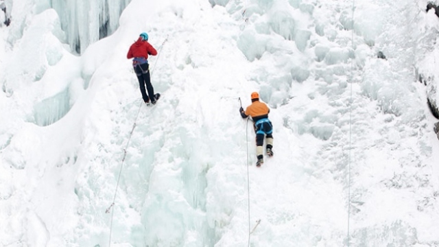 Erzurum'da dağcılar donmuş şelalelere tırmandı