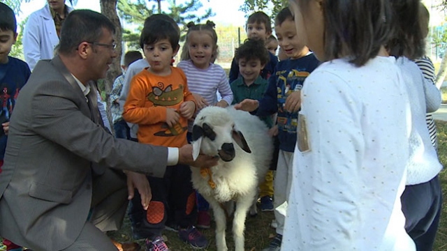 Erzurum'da çocukları kütüphaneye alıştırmak için farklı bir uygulama başlatıldı. Kütüphanenin bahçesine henüz 2 aylık olan "Kartopu" adlı bir kuzu alındı.