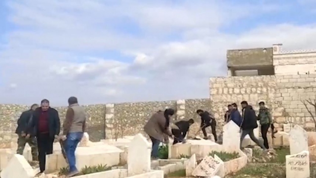 Esed güçleri, Batı Halep'te 9 yıl aradan sonra ele geçirdikleri ve nüfusu zorla göç ettikleri yerleşimlerde sivil mezarlıklarını bile yıkıyor.