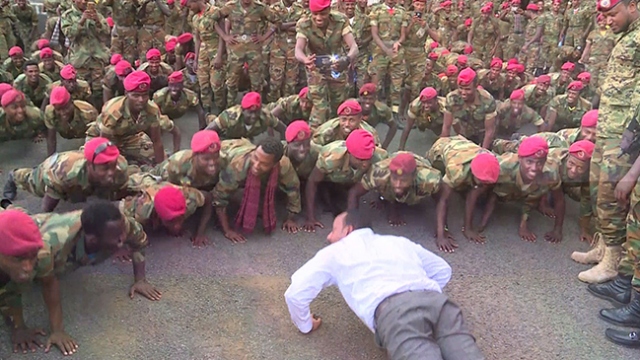 Etiyopya Başbakanı kendisini protesto eden askerlerle şınav çekti