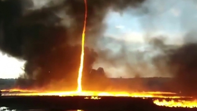 İngiltere’nin Derby kentinde bir fabrikada çıkan yangın ilginç bir görüntüye sahne oldu. Az rastlanan “ateş hortumu” itfaiyeciler tarafından görüntülendi.