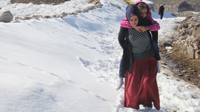 Kars'ta serebral palsili 11 yaşındaki Meryem Bayrambey, okula annesinin sırtında gidip geliyor.