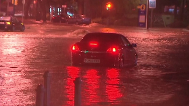 İspanya'nın Güneyinde, Malaga kentinde kuvvetli yağış nedeniyle cadde ve sokaklar gölete döndü.