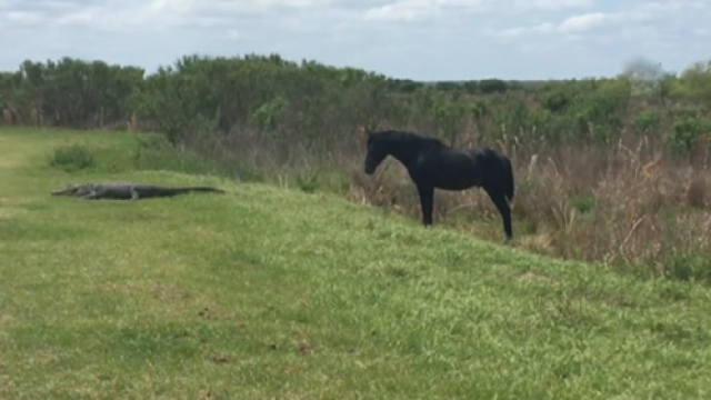 Florida’da timsah ve atın nefes kesen mücadelesi