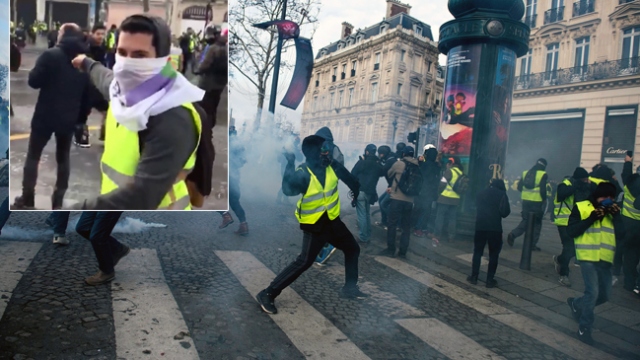 Fransa'daki eylemlere destek veren ve "Sarı Yelekliler"in arasına karışan terör örgütü PKK'nın yüzü maskeli sempatizanları TRT Haber'i hedef aldı.