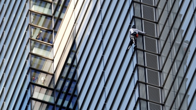 Fransa'nın örümcek adamı 230 metrelik kuleye tırmandı