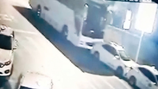 Üsküdar'da park halinde bulunan otobüsün aniden freni boşaldı. Otobüs üç aracı altına alırken, faciadan dönülen anlar güvenlik kamerasına yansıdı.
