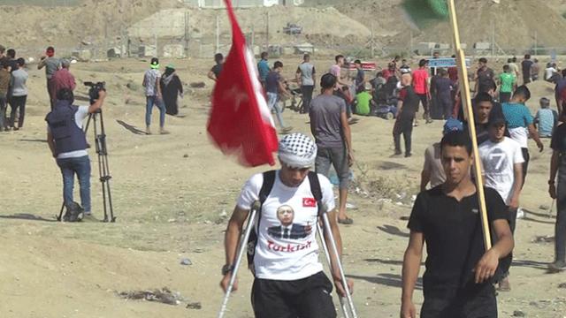 Gazzeli Selim yaralı katıldığı gösterilerde yine Türk bayrağı açtı