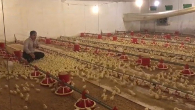 Bursa'da yumurtadan yeni çıkan binlerce civciv, görme yetileri yeterli olmadığı için yeme sesle yönlendiriliyor. Çiftlik sahibinin tek komutla binlerce civcivi etrafında topladığı anlar kameraya yansıdı.