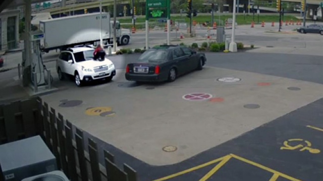 Amerika Birleşik Devletleri'nin Wisconsin eyaletinde benzin istasyonunda otomobil hırsızlığı girişimi beklenmedik bir müdahaleye sahne oldu. Kadın sürücü önce çalınan aracının üzerine atladı, hırsız aracı terk edip kaçarken, hareket halindeki aracına binip kontrol altına almayı da başardı. İşte o anlar kameralara böyle yansıdı.