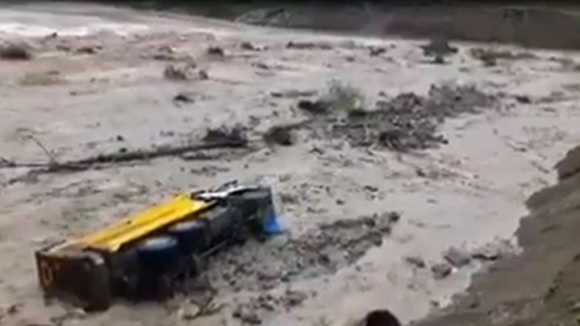 Giresun'da iş makineleri sele kapılarak sürüklendi