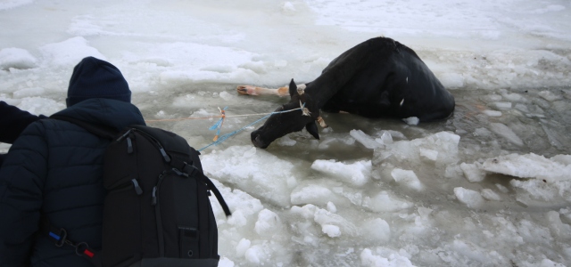 Beyşehir Gölü'nde su içmek için çıktığı buz kütlesinin kırılması sonucu göle düşen bir inek, sahibi ve çekim yapmak için göle gelen gazetecilerin uzun uğraşları sonucu kurtarıldı.
