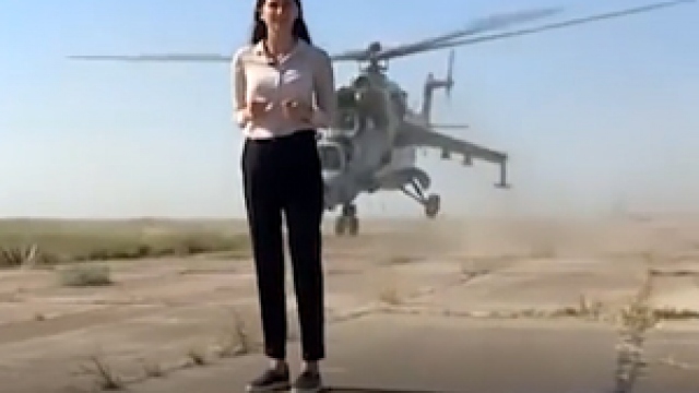 Azerbaycan Silahlı Kuvvetleri'nin 100. yıldönümü kutlamalarını sunan CBC TV muhabiri Elmira Musazade, bir helikopterin yaklaşmasıyla büyük bir tehlike yaşadı.