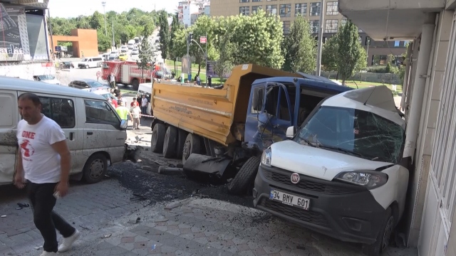 İstanbul'un Sultangazi ilçesinde sürücüsünün direksiyon hakimiyetini kaybettiği hafriyat kamyonu 6 aracı hurda yığınına çevirdi. Kamyonun otomobilleri önüne katarak sürüklediği anlar kameraya da yansıdı.
