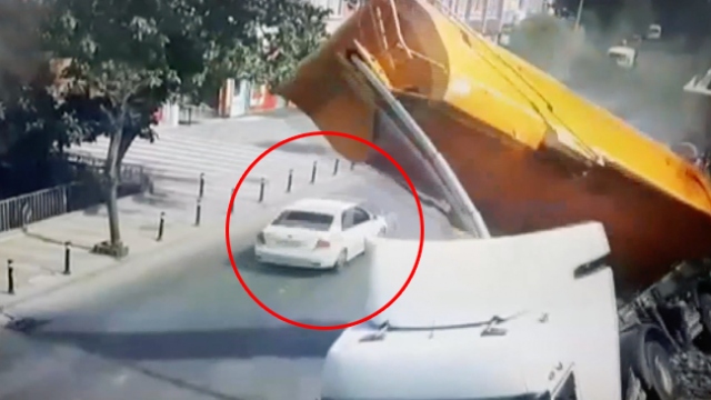 Üsküdar'da bir hafriyat kamyonu yükünü boşalttığı sırada aniden yola devrildi. Kamyon sürücüsünün yaralandığı olayda, yoldan geçen bir sürücü de kamyonun altında kalmaktan son anda kurtuldu.