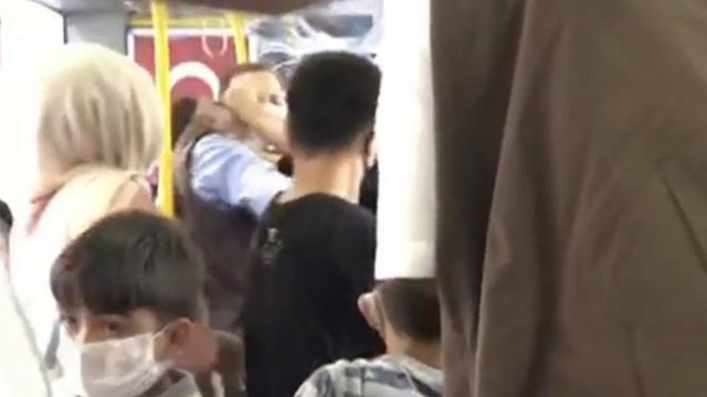 İstanbul'da bir halk otobüsünde maskesini düzgün takmayan yaşlı adam ile kendisini uyaran kadın arasında tartışma çıktı. Tartışmanın büyümesi üzerine kadın, yaşlı adama tokat attı. O anlar kameraya yansıdı.