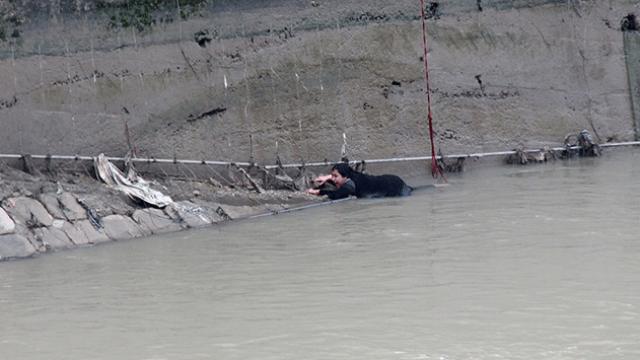 Hatay'da nehre düşen kadın halatla kurtarıldı