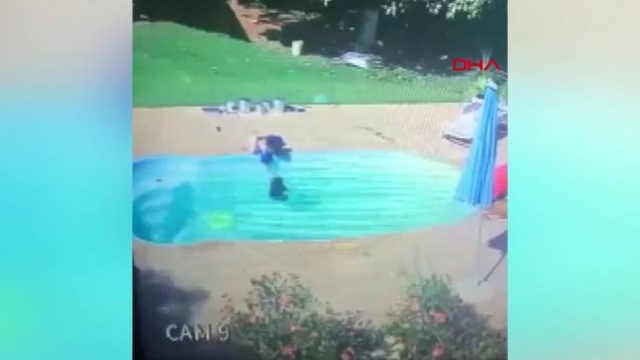 Havuza düşen bir yaşındaki çocuğu arkadaşı böyle kurtardı