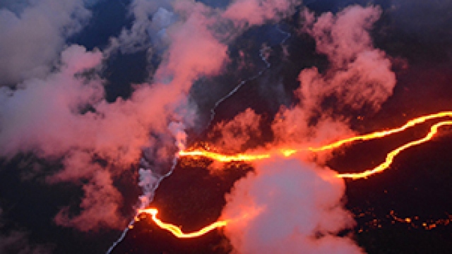 ABD'nin Hawaii eyaletinde Kilauea Yanardağı'nın patlaması sonucu lav akışı devam ediyor. Gece çekilen görüntüler, felaketin boyutunu bir kez daha ortaya koydu.