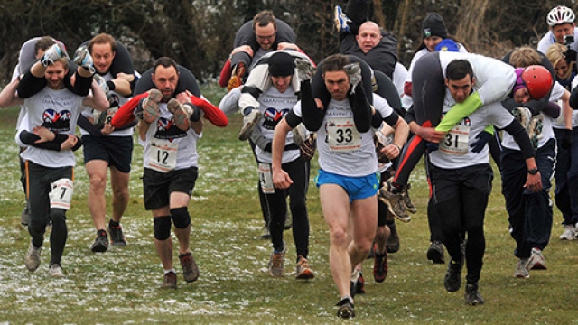 İngiltere'de 10. kez düzenlenen eş taşıma yarışması renkli görüntülere sahne oldu.